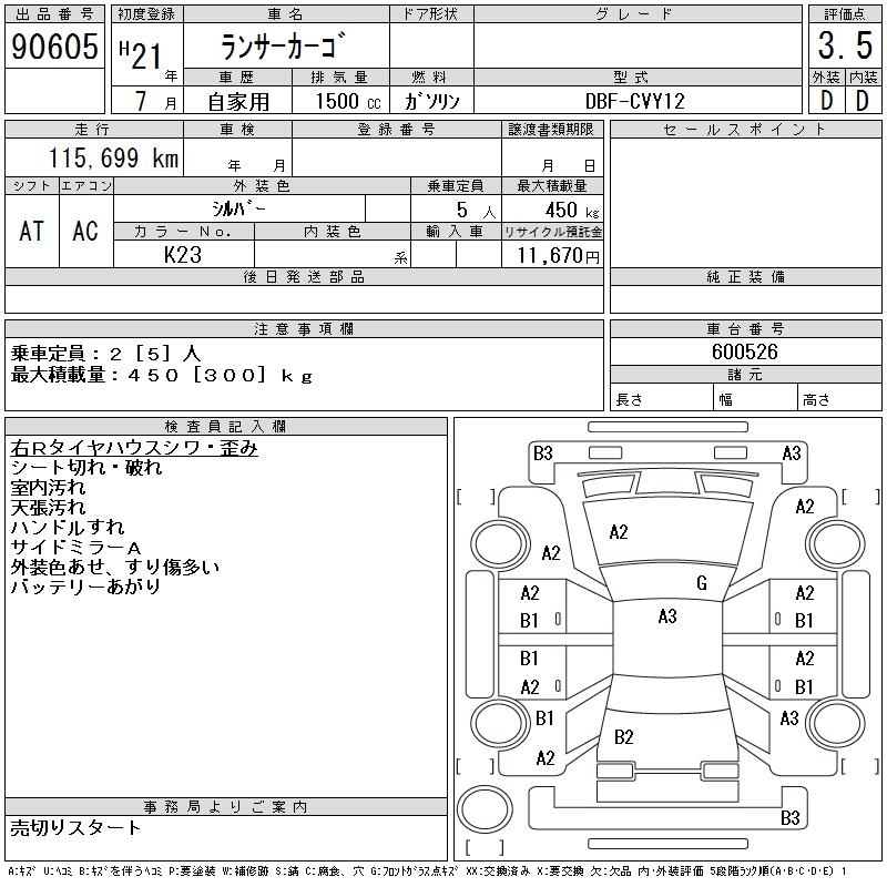 Все аукционы MITSUBISHI LANCER CARGO