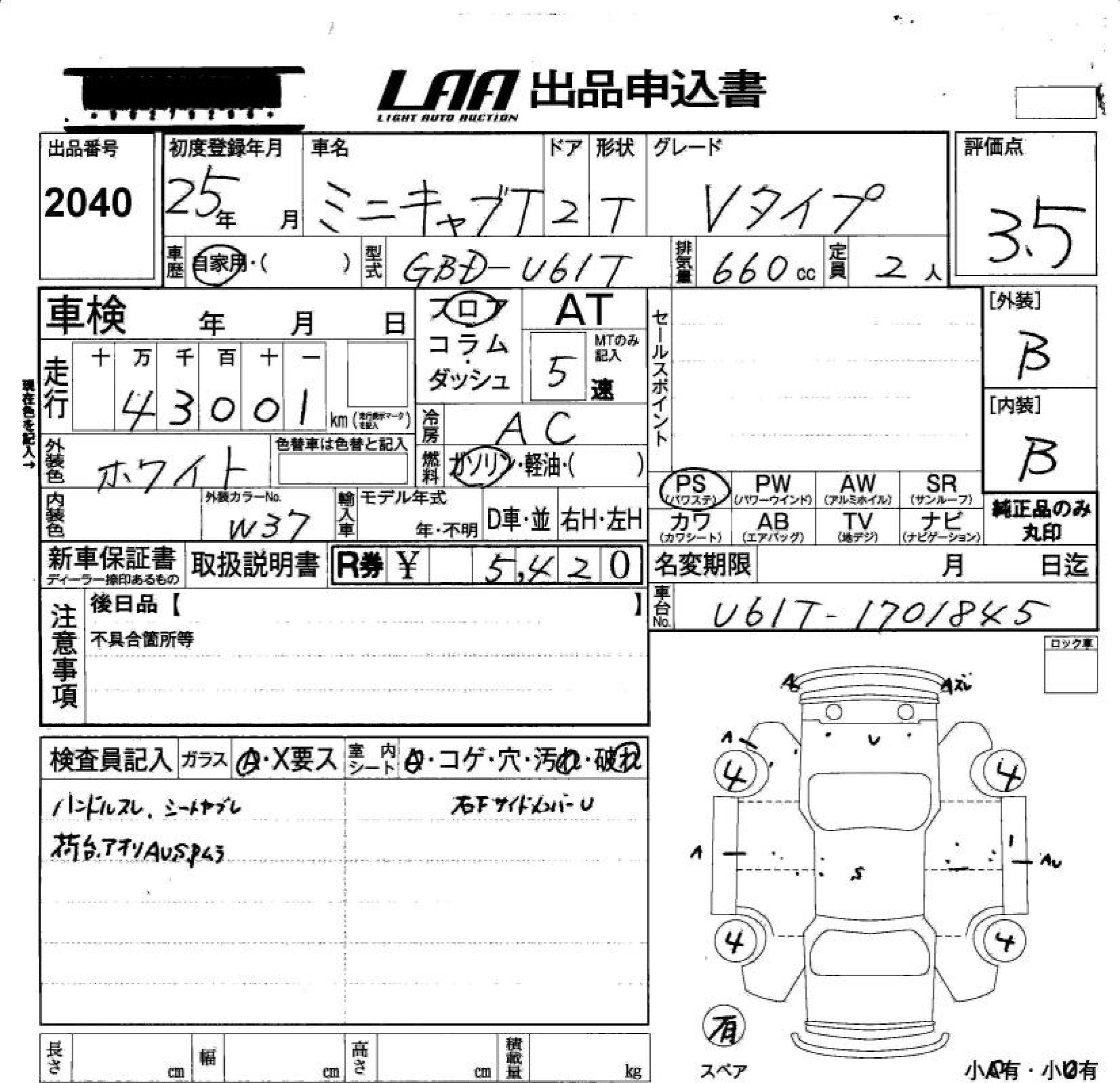MITSUBISHI MINICAB TRUCK V TYPE - лот 2040