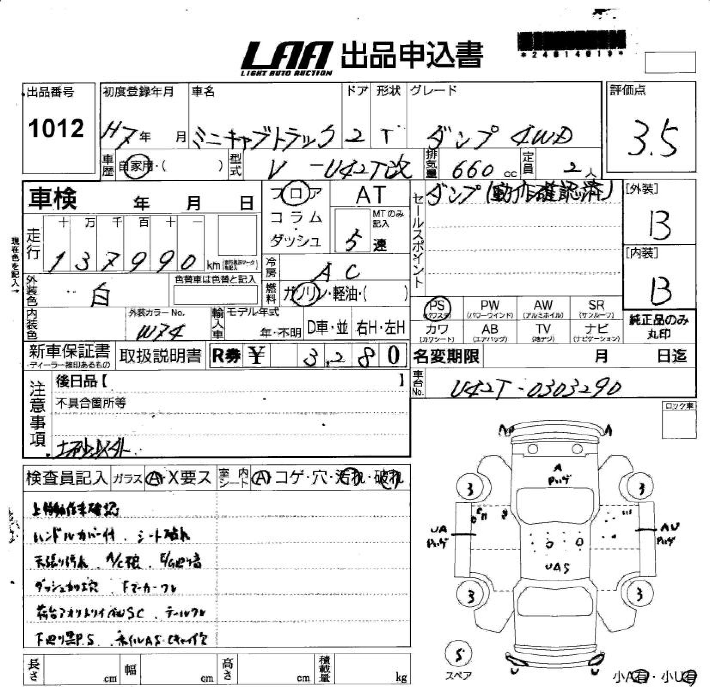 MITSUBISHI MINICAB TRUCK DUMP 4WD - лот 1012