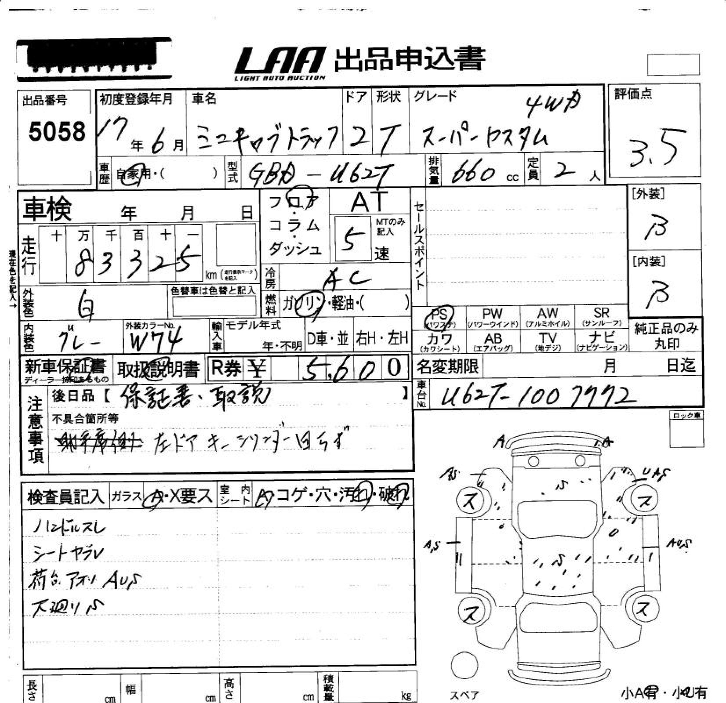MITSUBISHI MINICAB TRUCK SUPER CUSTOM 4WD - лот 5058