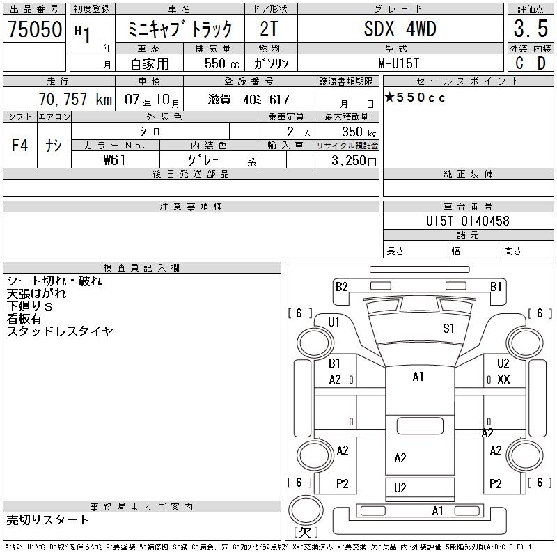 MITSUBISHI MINICAB TRUCK SDX 4WD - лот 75050