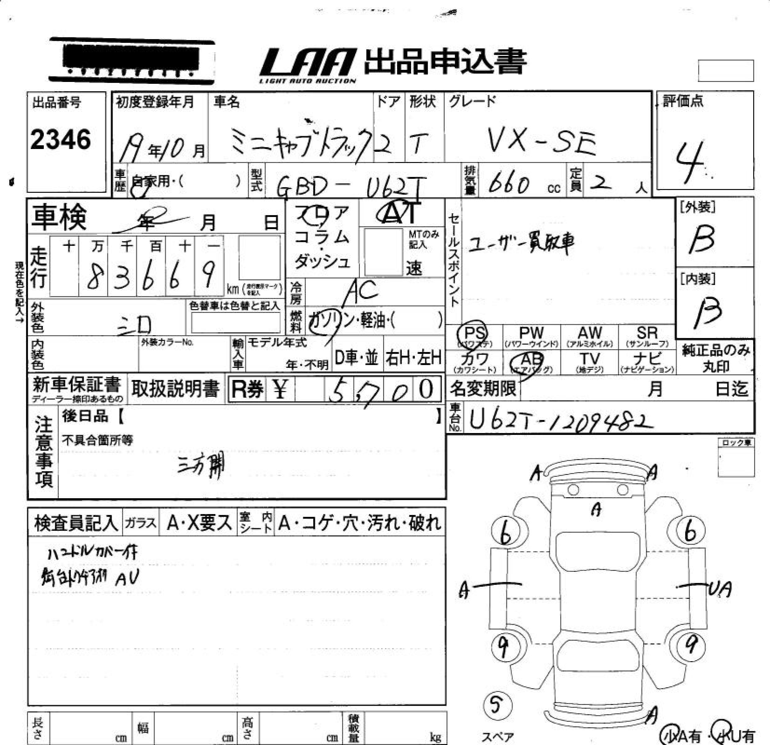 MITSUBISHI MINICAB TRUCK VX-SE - лот 2346