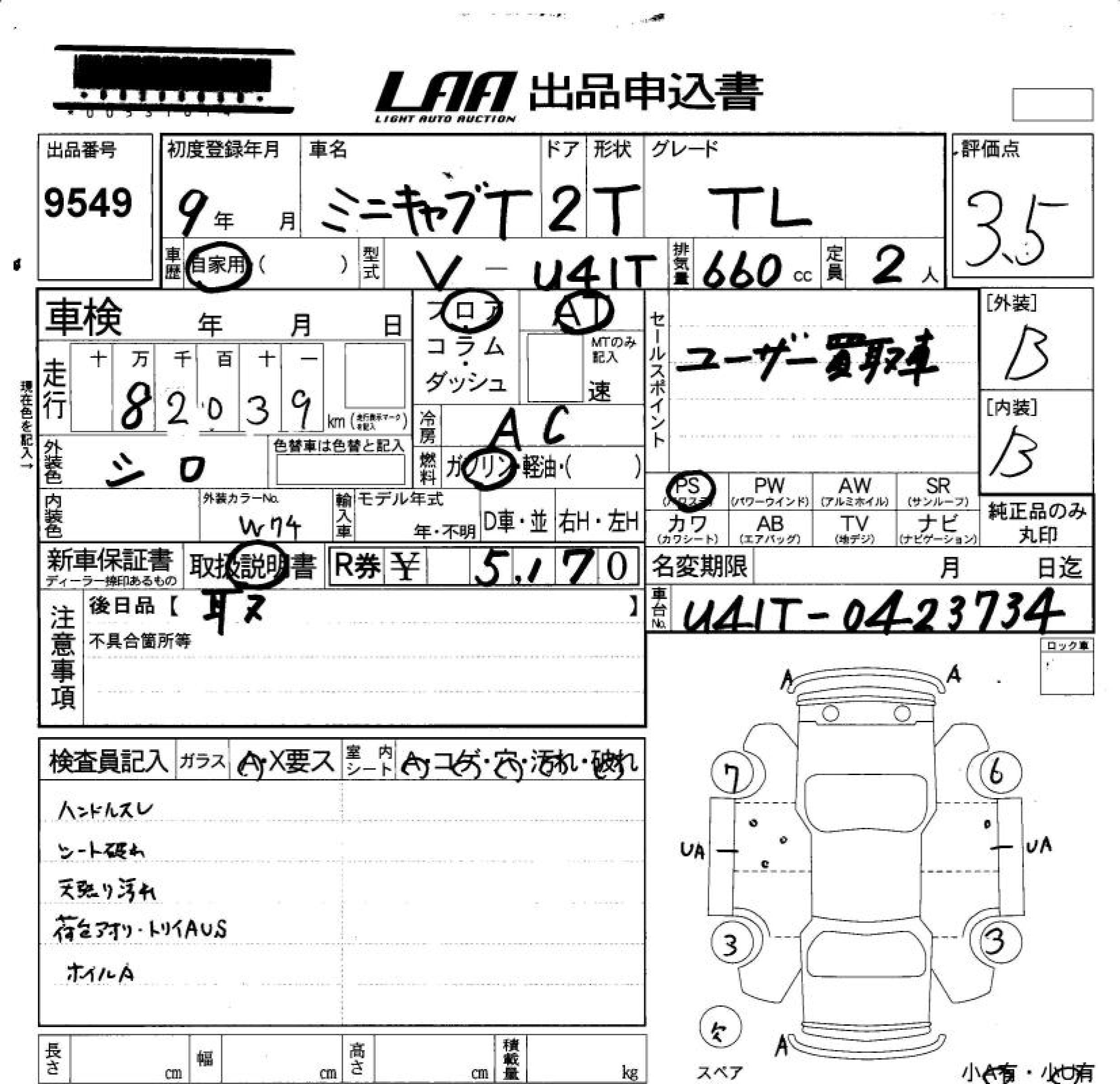 MITSUBISHI MINICAB TRUCK TL - лот 9549