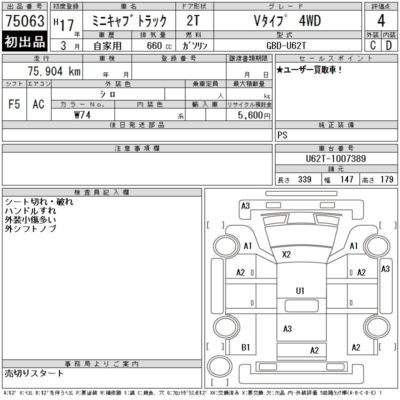 MITSUBISHI MINICAB TRUCK V TYPE 4WD - лот 75063