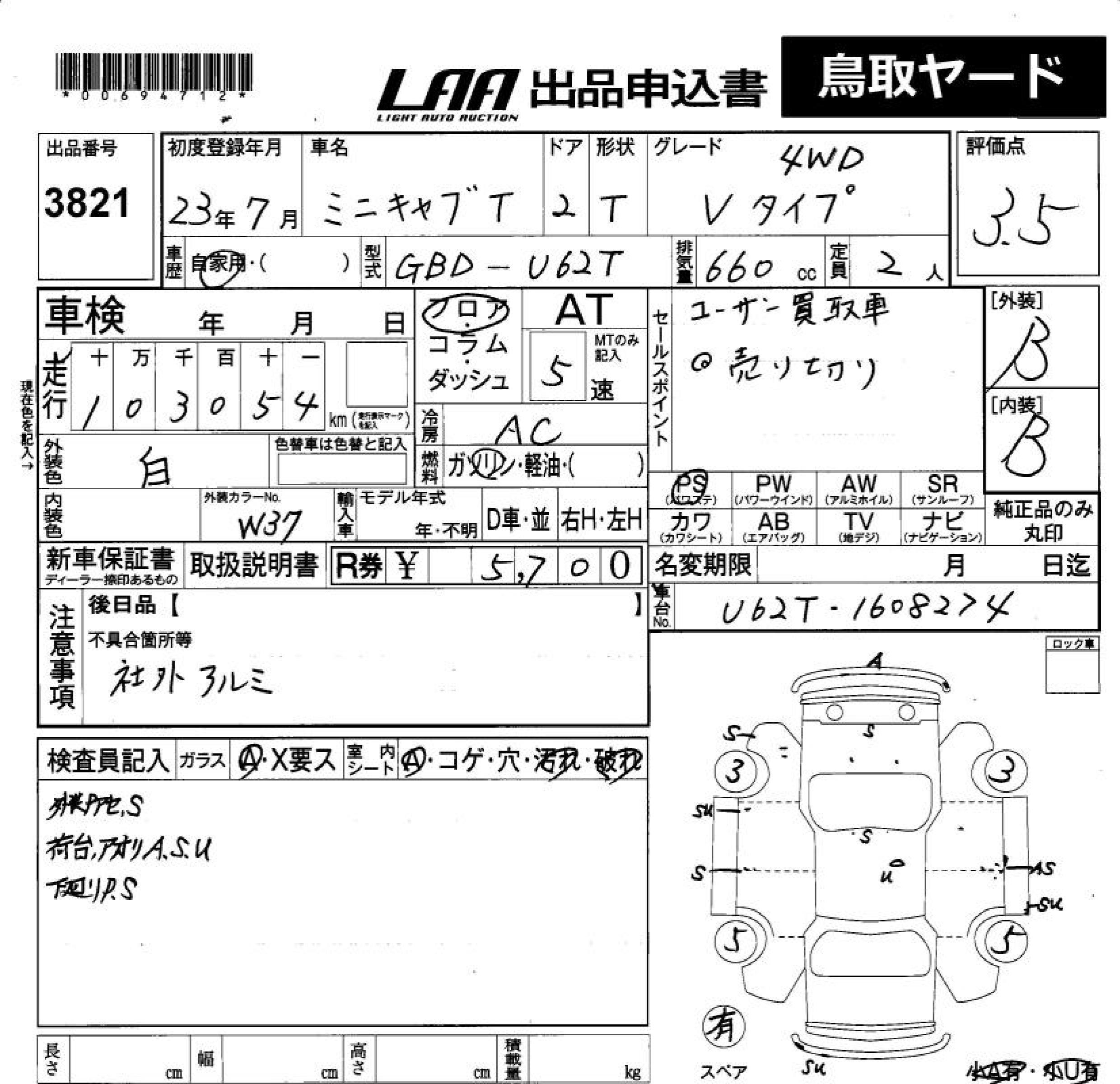 MITSUBISHI MINICAB TRUCK V TYPE 4WD - лот 3821