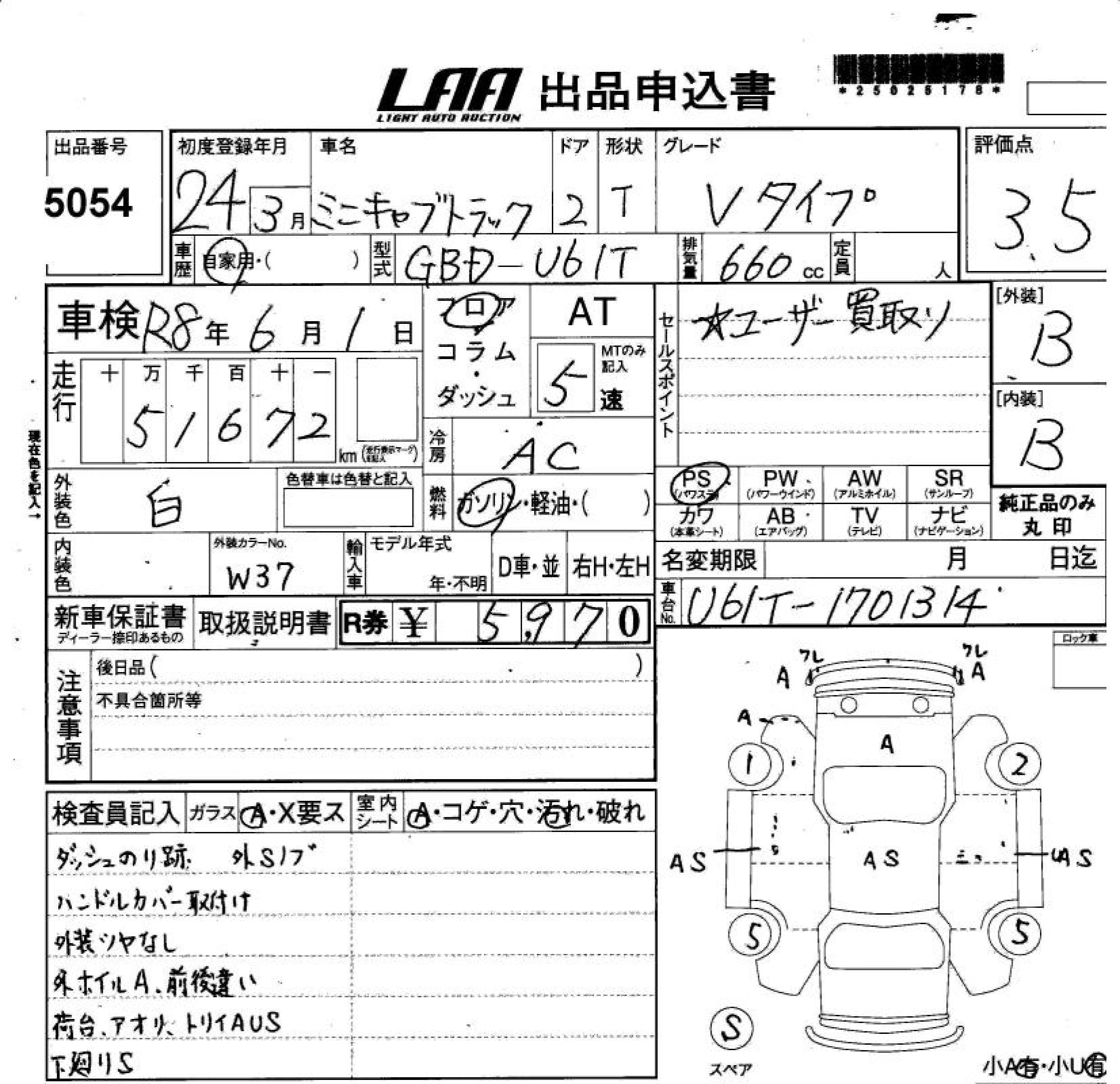 MITSUBISHI MINICAB TRUCK V TYPE - лот 5054