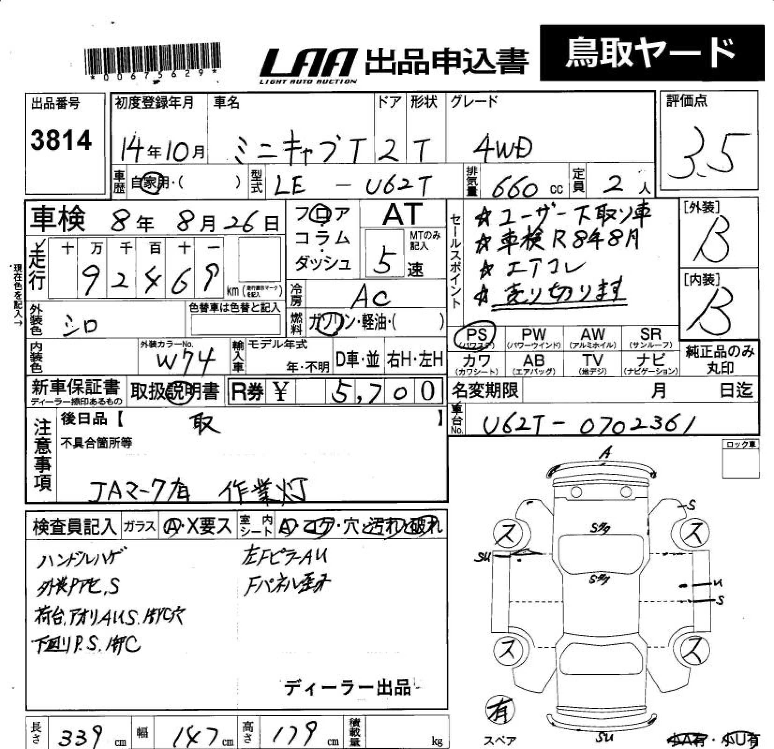 MITSUBISHI MINICAB TRUCK 4WD - лот 3814