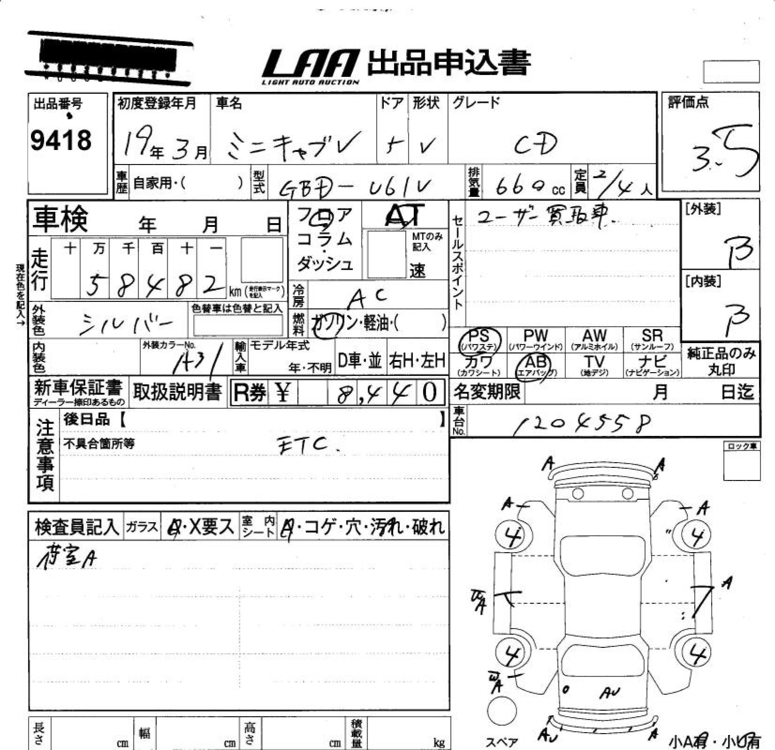 MITSUBISHI MINICAB CD - лот 9418
