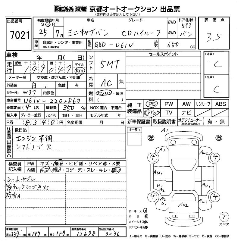 MITSUBISHI MINICAB CD - лот 7021