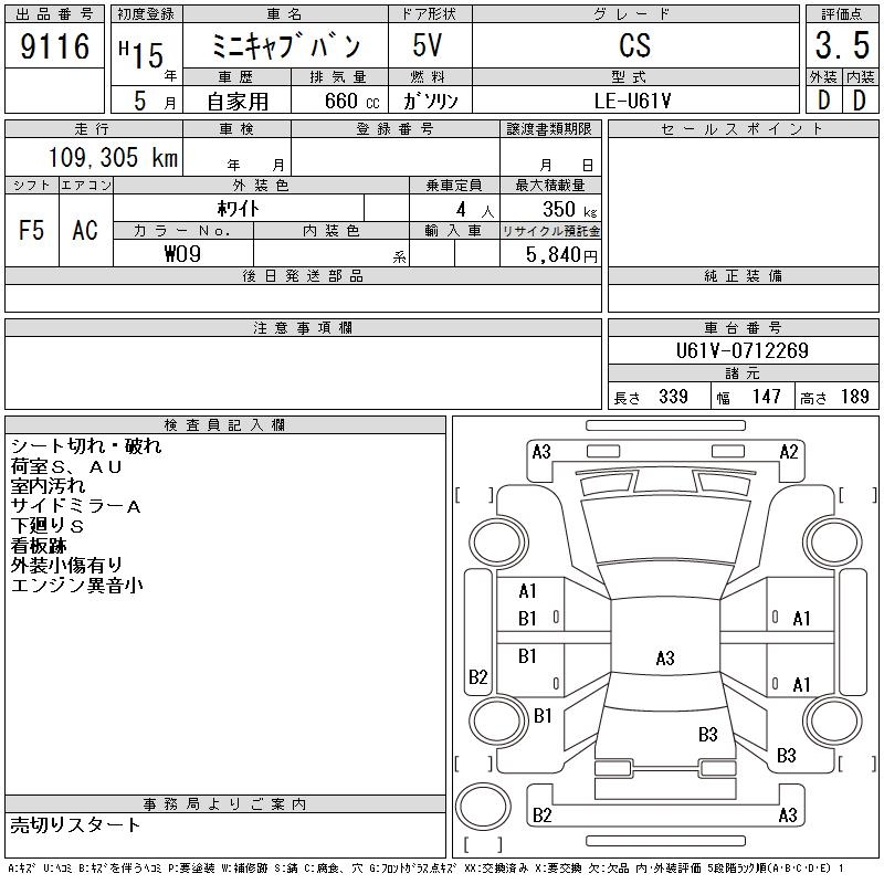 MITSUBISHI MINICAB CS - лот 9116