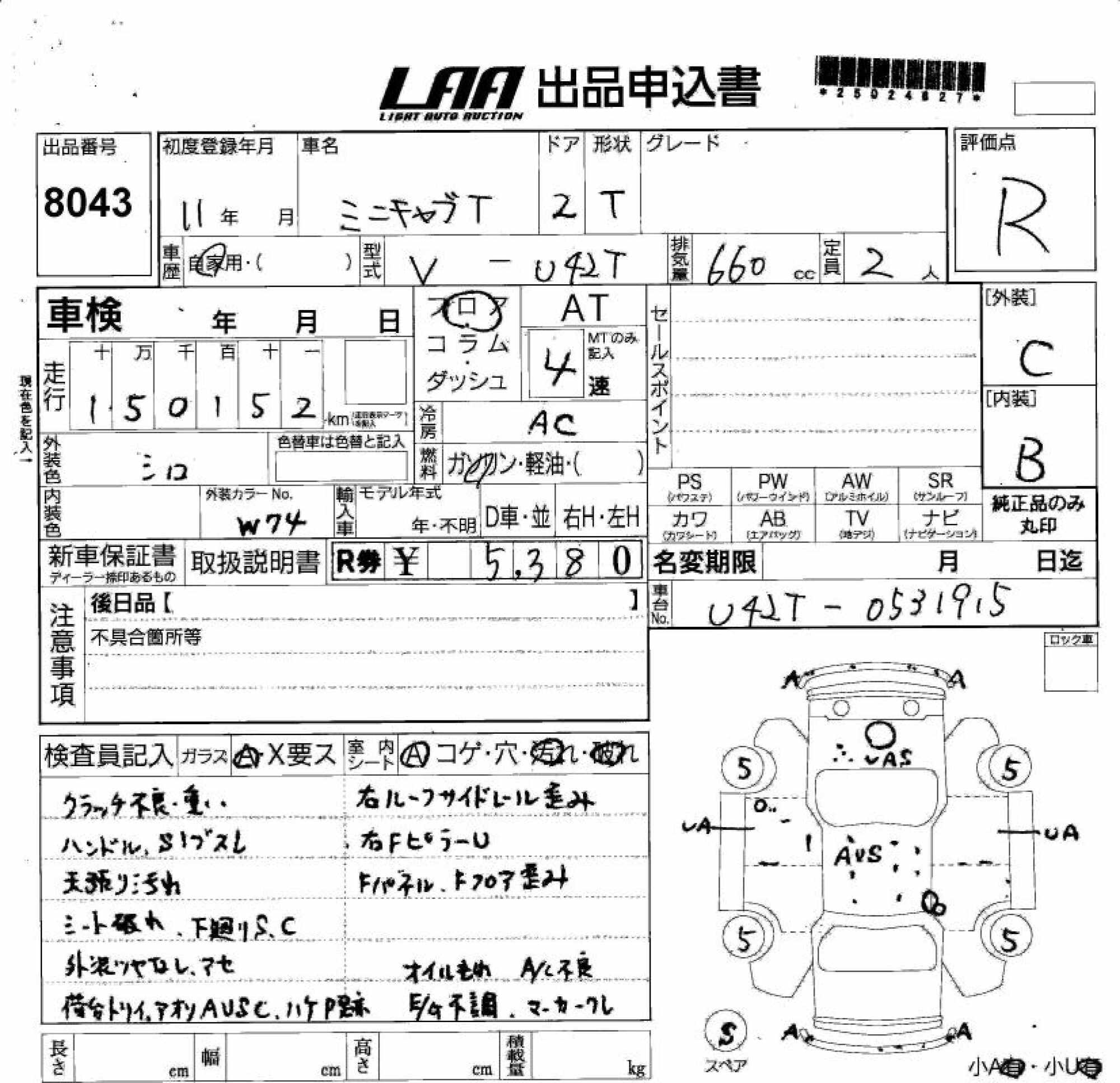 MITSUBISHI MINICAB TRUCK - лот 8043