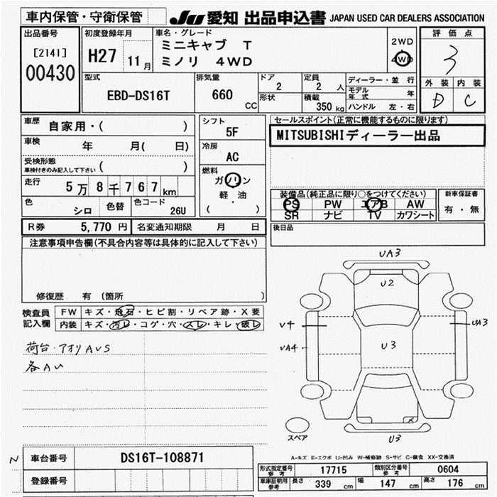 Все аукционы MITSUBISHI MINICAB TRUCK
