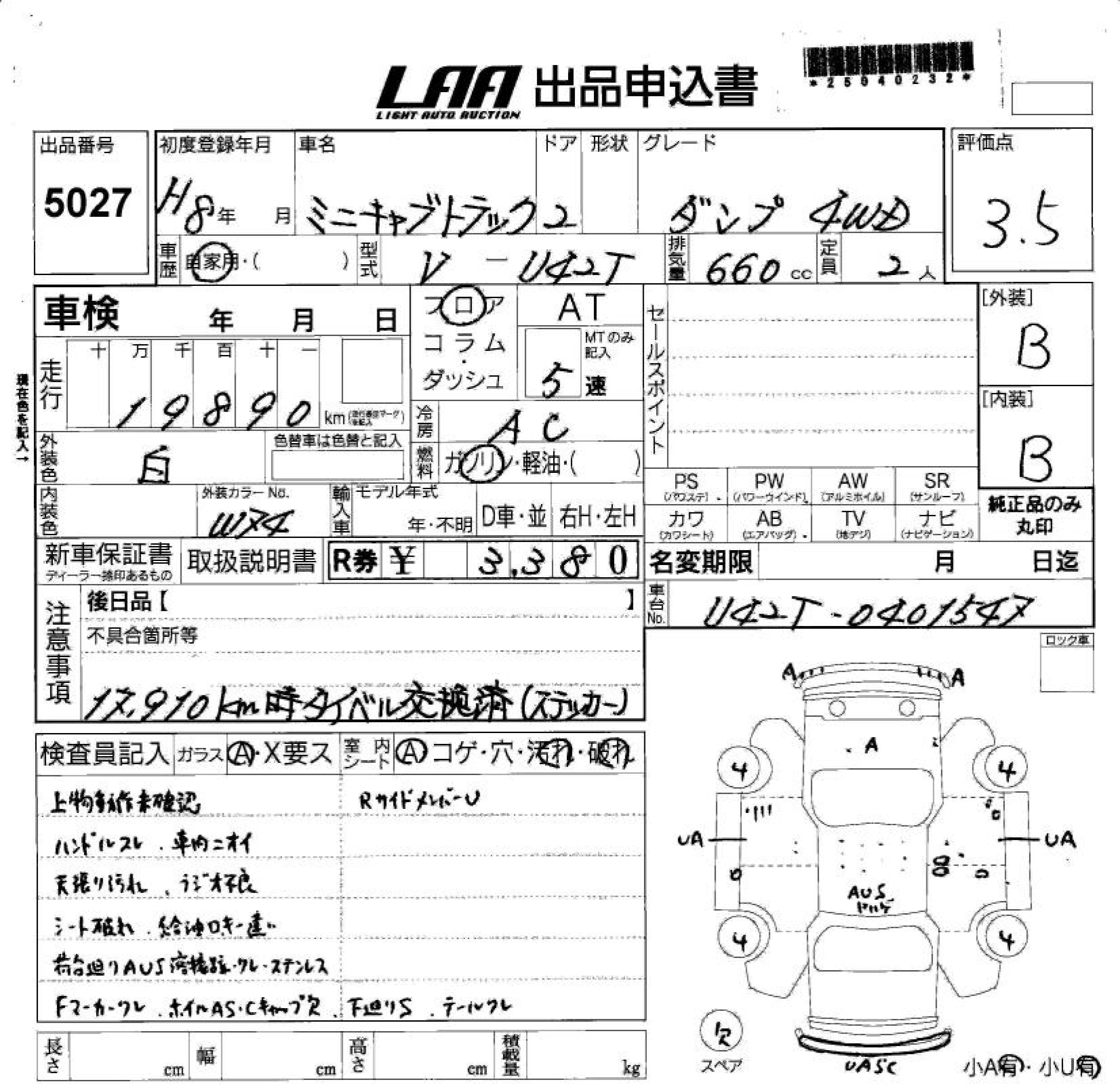 MITSUBISHI MINICAB TRUCK - лот 5027