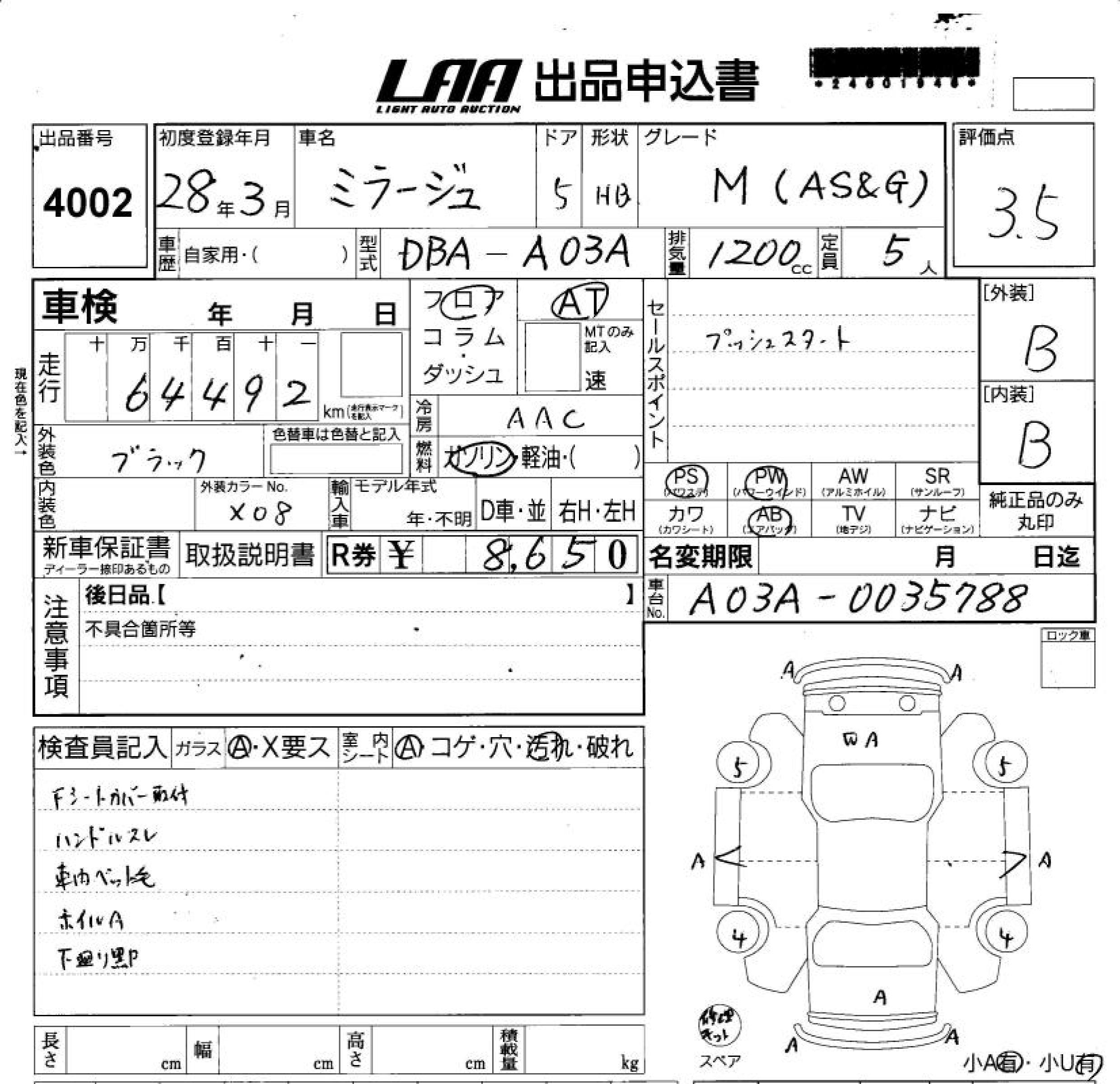 MITSUBISHI MIRAGE - лот 4002