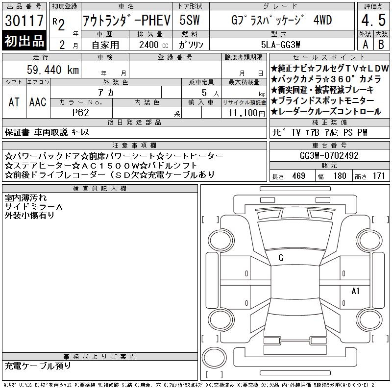 MITSUBISHI OUTLANDER PHEV G PLUS PACKAGE 4WD - лот 30117