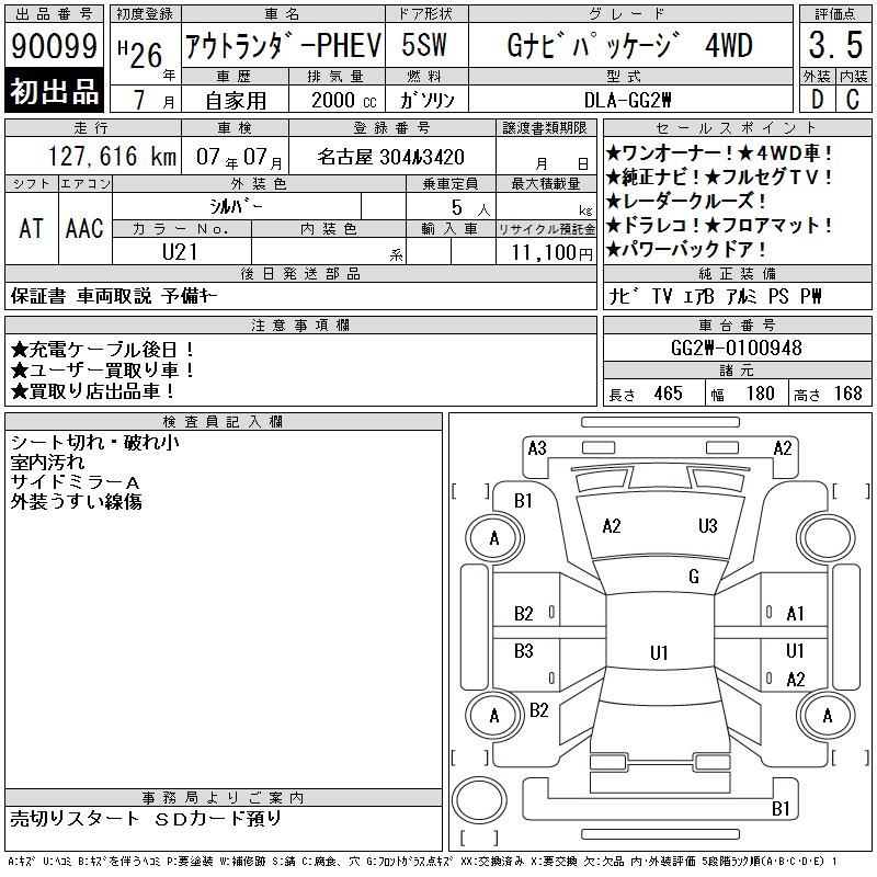 MITSUBISHI OUTLANDER PHEV G NAVIGATION PACKAGE 4WD - лот 90099