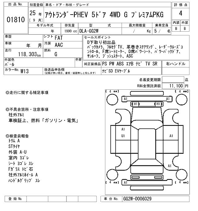 MITSUBISHI OUTLANDER PHEV G PREMIUM PKG - лот 1810