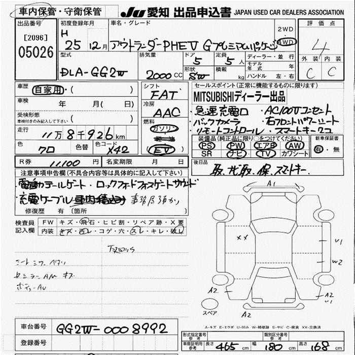 MITSUBISHI OUTLANDER PHEV G PREMIUM PACKAGE 4WD - лот 5026