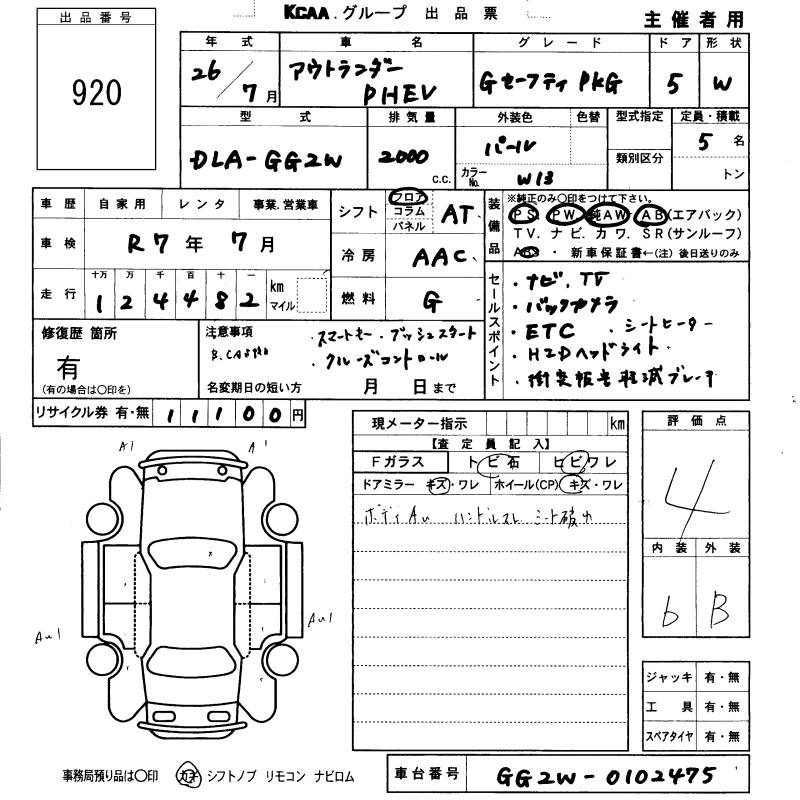 MITSUBISHI OUTLANDER PHEV G SAFETY PACKAGE - лот 920