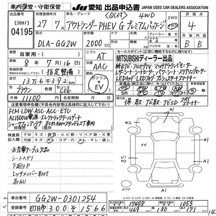 MITSUBISHI OUTLANDER PHEV G PREMIUM PACKAGE 4WD - лот 4195