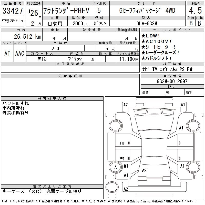 MITSUBISHI OUTLANDER PHEV G SAFETY PACKAGE 4WD - лот 33427
