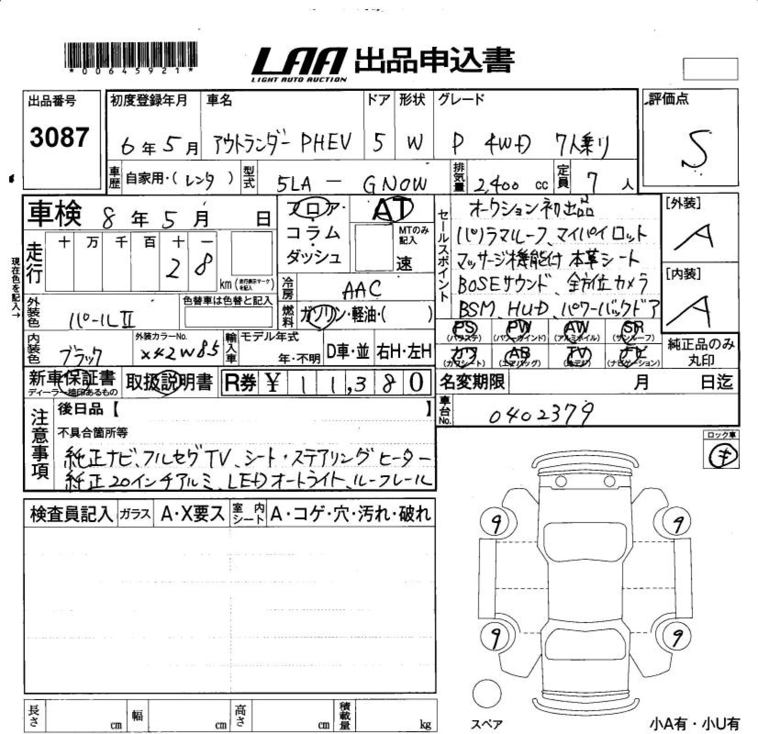 MITSUBISHI OUTLANDER PHEV P 4WD 7 NUMBER OF SEATS - лот 3087
