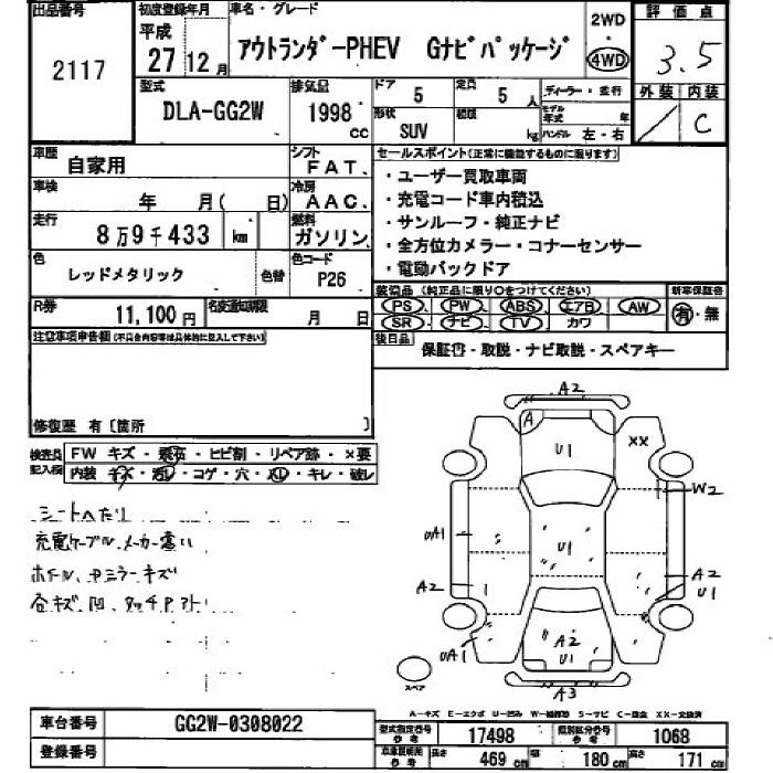 MITSUBISHI OUTLANDER PHEV G NAVIGATION PG 4WD - лот 2117