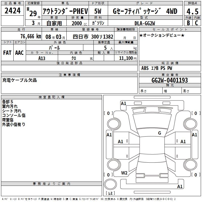 MITSUBISHI OUTLANDER PHEV G SAFETY PACKAGE 4WD - лот 2424