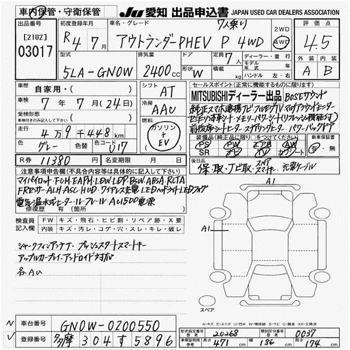 MITSUBISHI OUTLANDER PHEV P 4WD - лот 3017