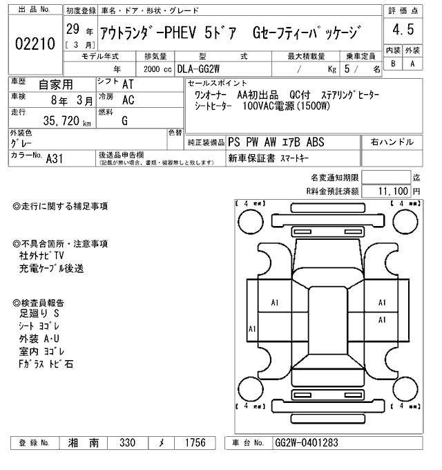 MITSUBISHI OUTLANDER PHEV G SAFETY - PACKAGE - лот 2210