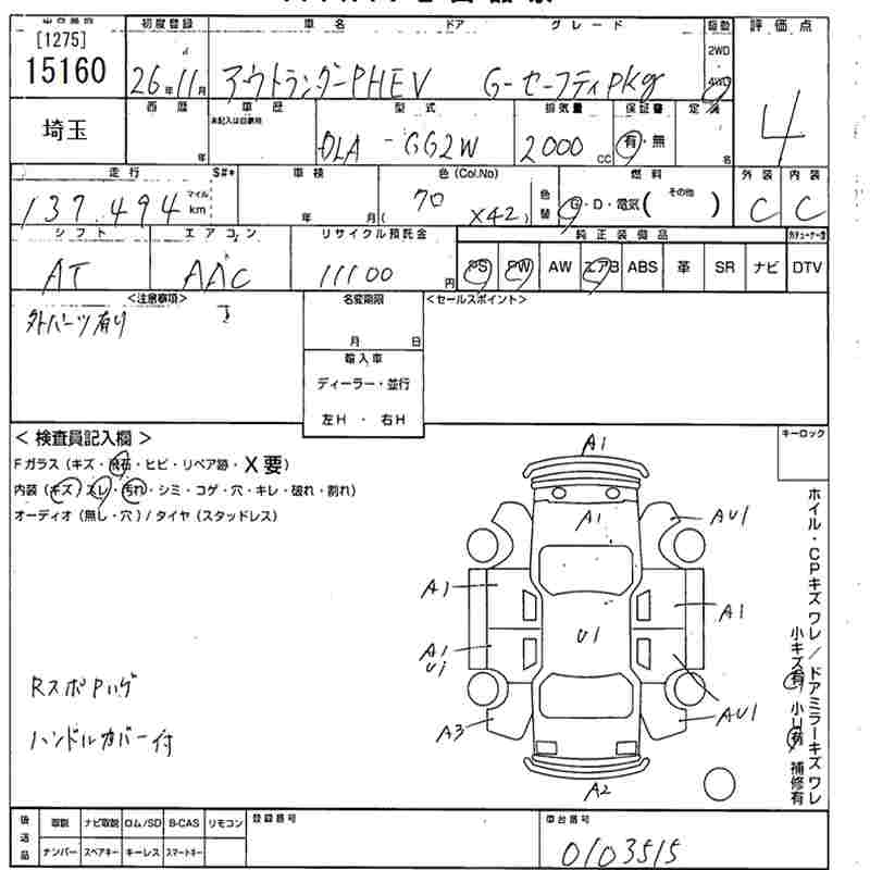 MITSUBISHI OUTLANDER PHEV G SAFETY PACKAGE - лот 15160