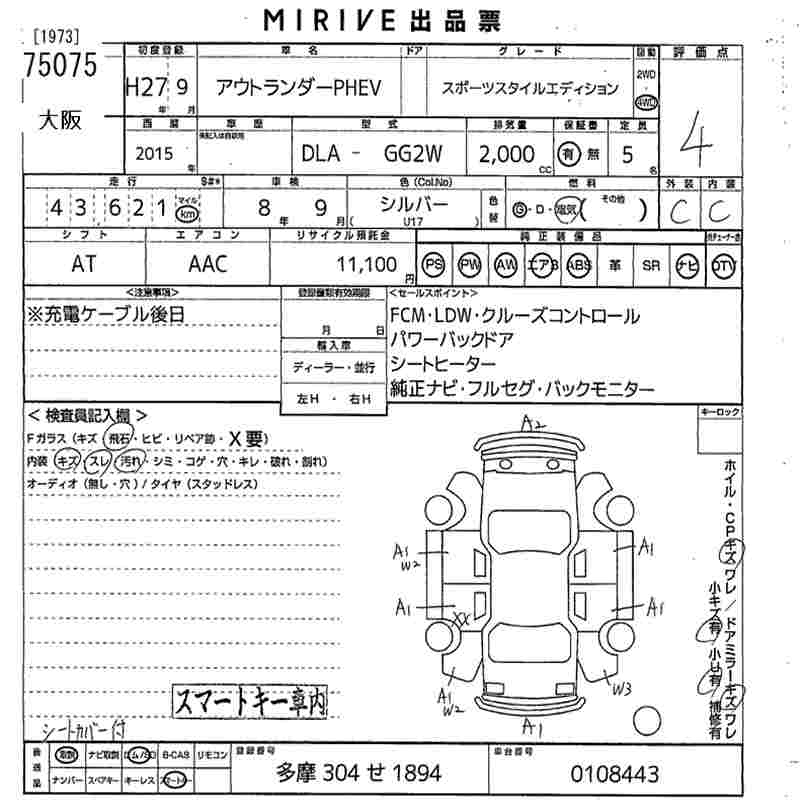 MITSUBISHI OUTLANDER PHEV SPORT STYLE EDITION 4WD - лот 75075