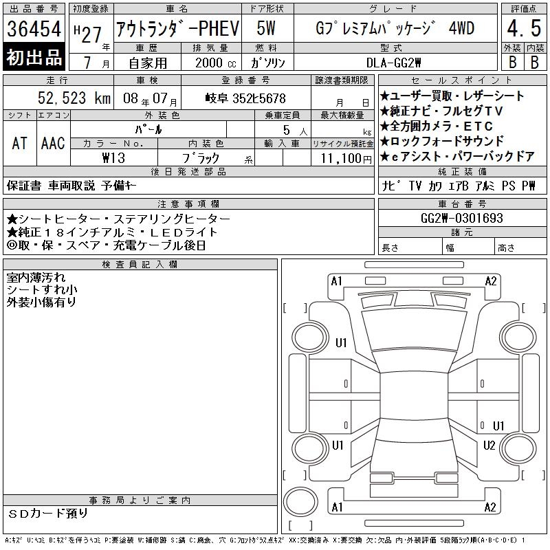 MITSUBISHI OUTLANDER PHEV G PREMIUM PACKAGE 4WD - лот 36454