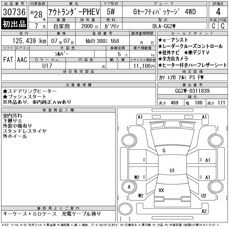 MITSUBISHI OUTLANDER PHEV G SAFETY PACKAGE 4WD - лот 30736