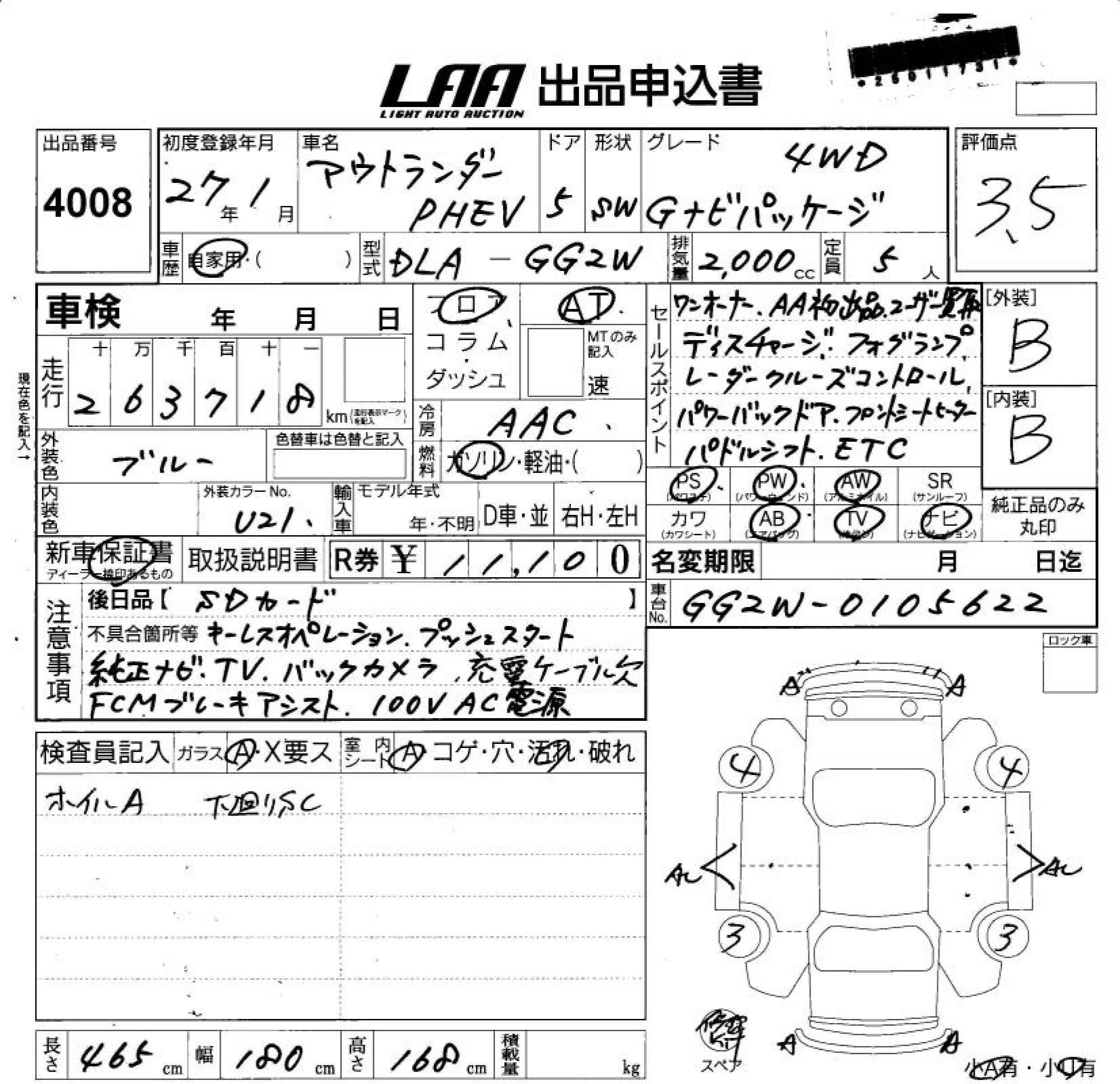 MITSUBISHI OUTLANDER PHEV G NAVIGATION PACKAGE 4WD - лот 4008