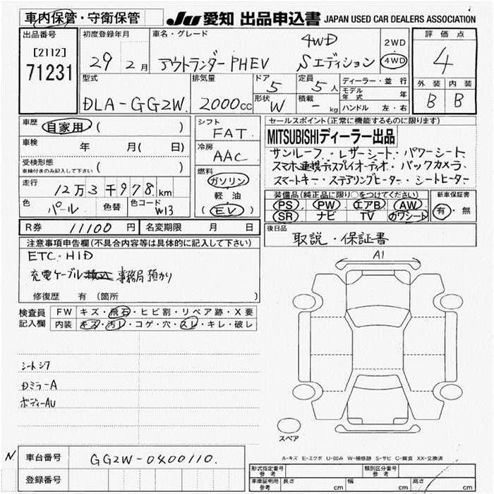 MITSUBISHI OUTLANDER PHEV S EDITION 4WD - лот 71231