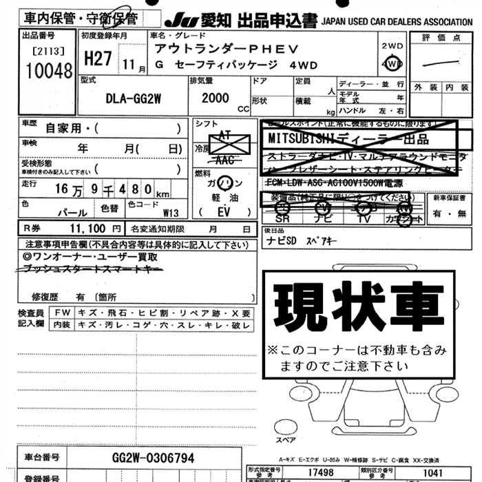 MITSUBISHI OUTLANDER PHEV G SAFETY PACKAGE 4WD - лот 10048