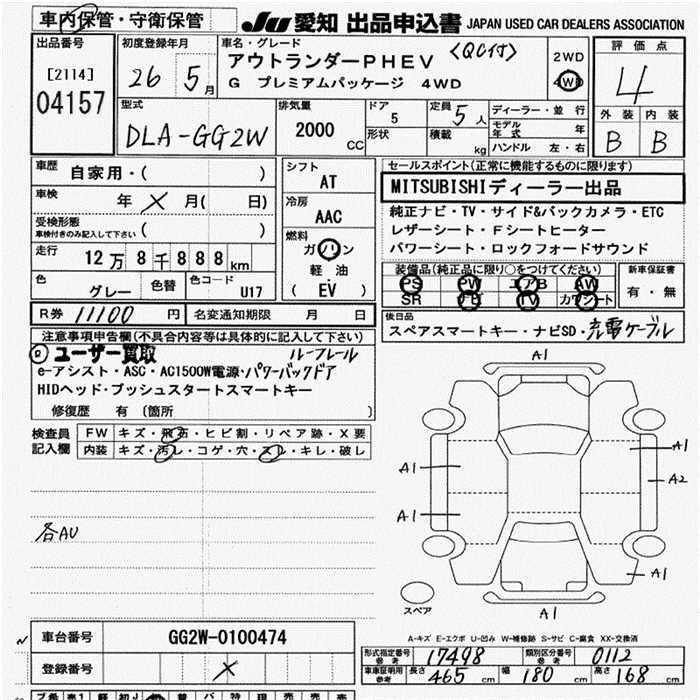 MITSUBISHI OUTLANDER PHEV G PREMIUM PACKAGE 4WD - лот 4157