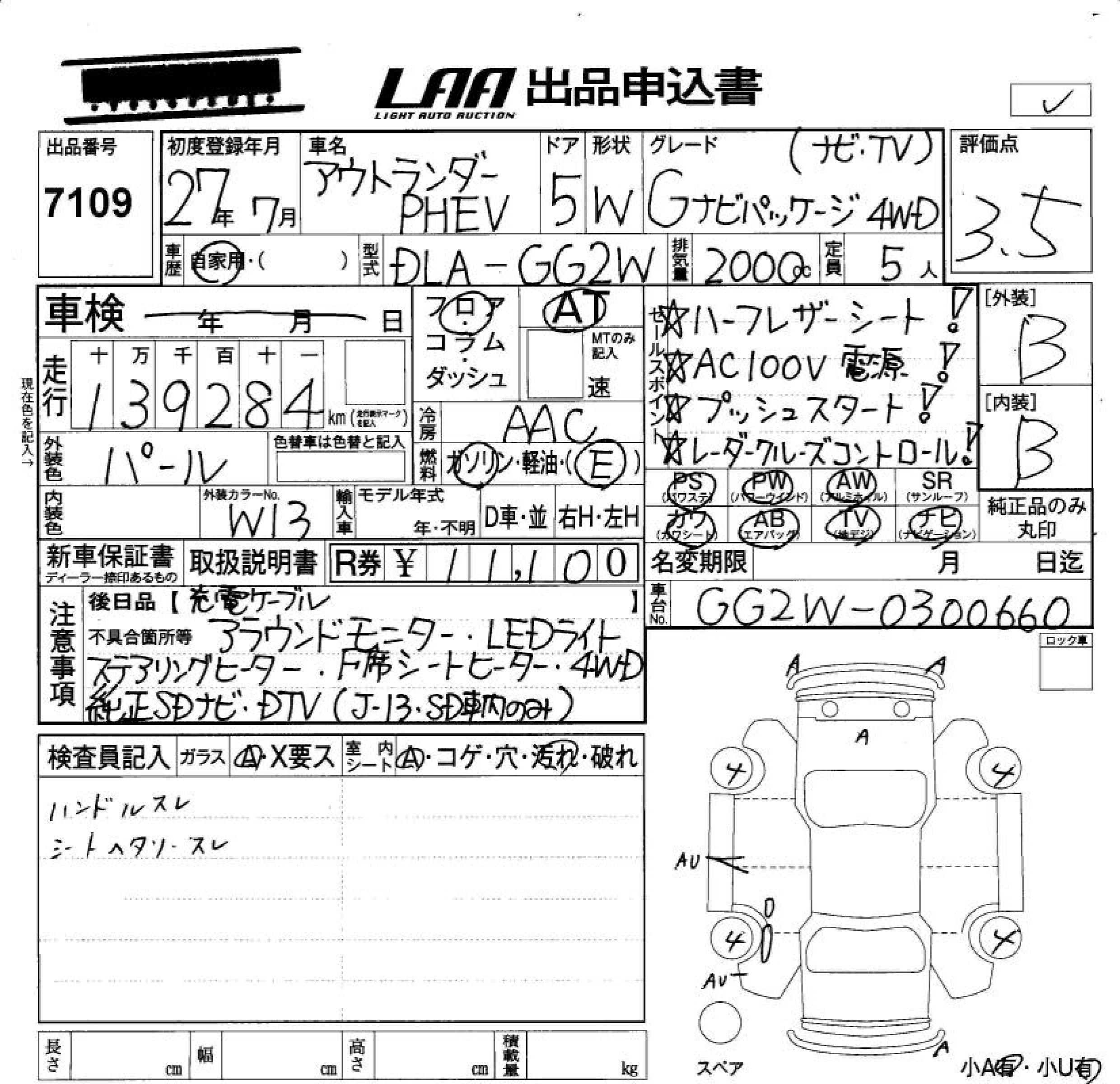 MITSUBISHI OUTLANDER PHEV G NAVIGATION PACKAGE 4WD NAVIGATION - лот 7109