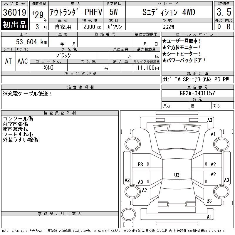 MITSUBISHI OUTLANDER PHEV S EDITION 4WD - лот 36019