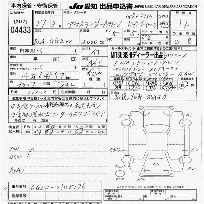 MITSUBISHI OUTLANDER PHEV G PREMIUM PACKAGE 4WD - лот 4433