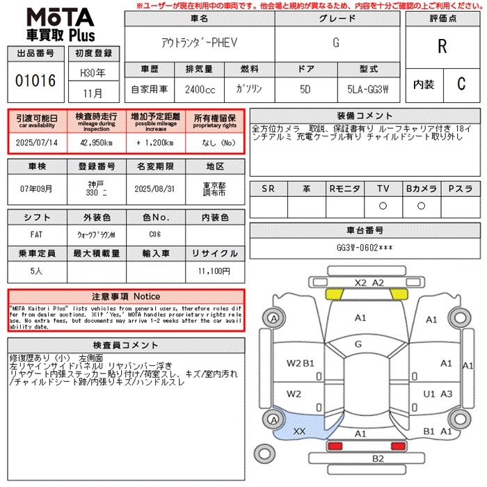 MITSUBISHI OUTLANDER PHEV G - лот 1016