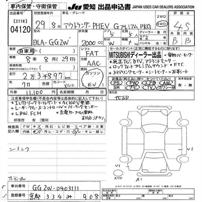 MITSUBISHI OUTLANDER PHEV G PREMIUM PACKAGE 4WD - лот 4120