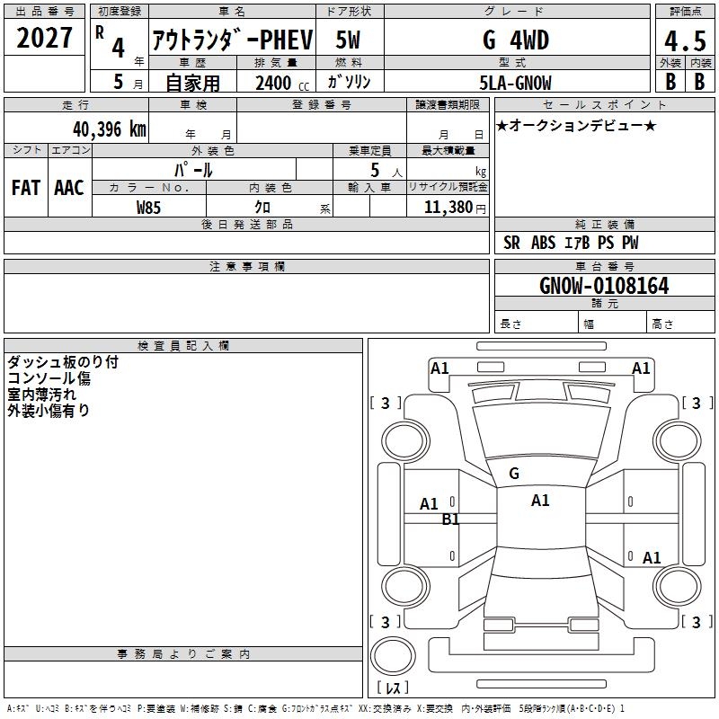 MITSUBISHI OUTLANDER PHEV G 4WD - лот 2027