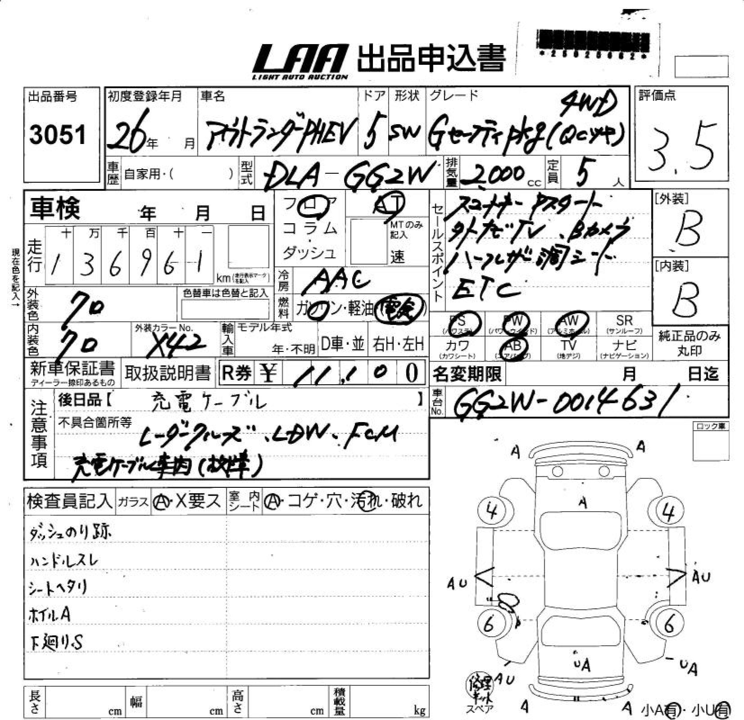 MITSUBISHI OUTLANDER PHEV G SAFETY PACKAGE 4WD - лот 3051