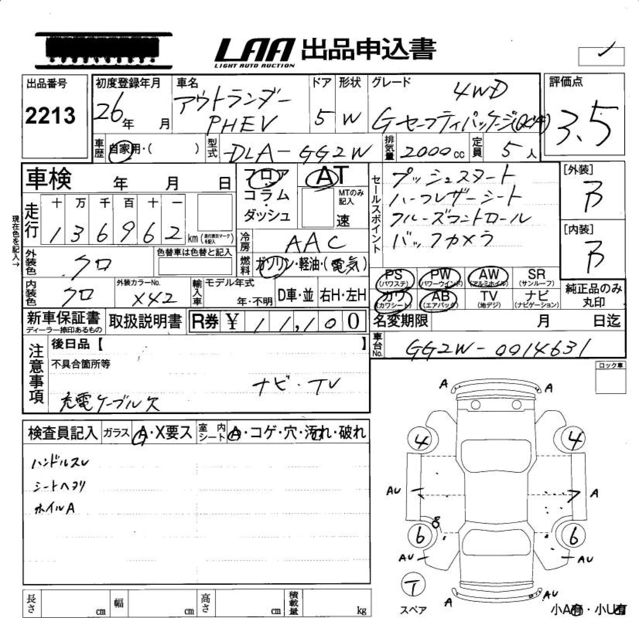 MITSUBISHI OUTLANDER PHEV G SAFETY PACKAGE 4WD - лот 2213