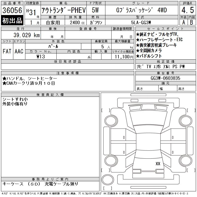 MITSUBISHI OUTLANDER PHEV G PLUS PACKAGE 4WD - лот 36056