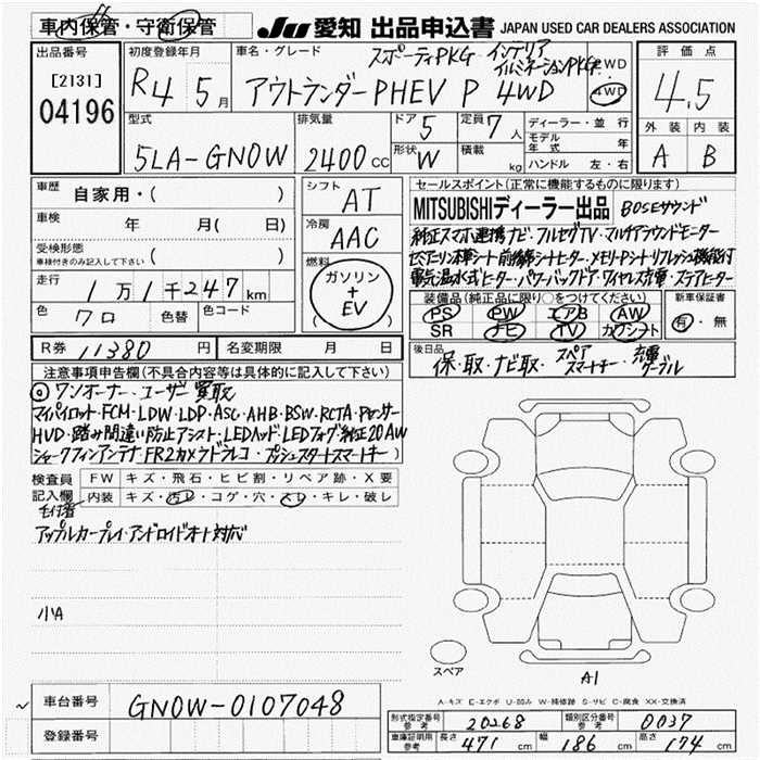 MITSUBISHI OUTLANDER PHEV P SPORT INTERIOR ILMI P 4WD - лот 4196