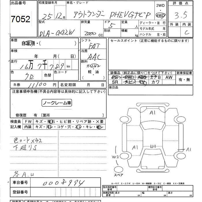MITSUBISHI OUTLANDER 4WD PHEV G NAVIGATION PACKAGE - лот 7052