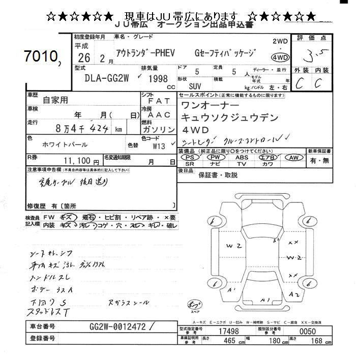 MITSUBISHI OUTLANDER 4WD PHEV G SAFETY PACKAGE - лот 7010
